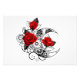 Contorno, lua da crista mecânica com engrenagens, decorada com rosas vermelhas com caules e folhas pretas em fundo branco. Steampunk