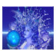 Uma pessoa olhando para as reflexões dentro a esfera de cristal