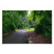 A lush, sun-dappled view of a winding path within Crow Wood Park, Sowerby Bridge. The image captures the deep greens of mature deciduous trees and thick shrubbery, framed by two historic stone bollards that mark the transition into the open lawn. The soft summer light creates a tranquil, inviting atmosphere, highlighting the natural beauty of this local West Yorkshire gem.