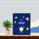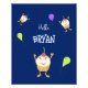 Poster com cupcakes felizes bonitos sobre fundo azul escuro e balões de festas