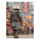 Step into a neon-drenched dystopia with this epic cyberpunk samurai mecha warrior, viewed from behind as he strides through a rainy, bustling futuristic Asian city. The heavily armored teal-and-orange robotic suit, complete with exposed wiring, tactical gear, and a weathered conical straw hat marked with red stitching, fuses ancient ronin tradition with high-tech grit. Glowing red, pink, blue, and yellow neon signs and kanji billboards reflect on wet streets, creating intense atmosphere and cinematic drama—perfect for anime fans, cyberpunk lovers, gamers, man caves, teen rooms, or as bold gifts for sci-fi enthusiasts.