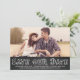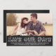 Rustic salve o cartão de data com tipografia de madeira em fundo de quadro.