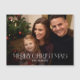 Imagens de tipografia de Feliz Natal simples e elegante com modelo de fotografia e filtro opaco escuro opcional com campo de texto editável.
