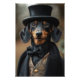 Este charmoso dachshund está vestido para impressionar em uma roupa luxuosa ao estilo vitoriano. Vestindo um chapéu preto, uma gravata arco elegante, e um ouro, um colete ornamentado, o cachorro expele um ar de classe e sofisticação. Sua expressão envenenada adiciona à elegância geral, criando um olhar caprichoso mas real. Capturando perfeitamente a essência de um distinto cavalheiro, esta imagem traz uma mistura deliciosa de humor e graça.