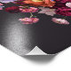 An elegant floral still life featuring richly colored blossoms arranged on a dark background. This artwork combines timeless botanical beauty with a moody, sophisticated atmosphere
