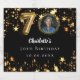 Fundo preto, decorado com estrelas ouros. Personalize e adicione uma foto, nome, idade, data.