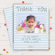 Cartões de agradecimentos de aniversário moderno. Cartões de agradecimentos personalizável para crianças. Cartões de agradecimentos de aniversário de fotos - personalize-o com sua foto e seu nome. Listras brancas e azuis modernas. // É perfeito para as crianças - excelente por agradecer aos seus amigos e família pelos presentes de aniversário e por fazer a festa de aniversário tão especial ou para qualquer outra ocasião.