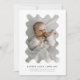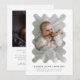 Cartão de anúncio branco e doce de nascimento com foto desenhada à mão de uma linha ondulada.