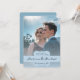 Anuncie seu próximo dia de casamento com uma foto simples e elegante, salve o anúncio da data. O design de lançamento apresenta a colocação de fotos do casal engajado com um gradiente e faixa azul e texto manuscrito para a noiva e os nomes do noivo. Se precisar de assistência com personalização, entre em contato comigo diretamente para garantir que você receberá o anúncio de acordo com suas especificações.