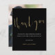 Foto de Caligrafia, Obrigados Dourados de Casamento Negro. Um alternativo de 4,5 pol x 5,6 pol com preço inferior. Disponível em um STOCK DE CARTÃO SEMI-GLOSS 110 lb, que é a opção padrão (mais espesso para convites), OU um STOCK de PAPEL THINNER FINISH 80 lb FINISH (ideal para gabinetes). Os envelopes são um extra opcional e são ligeiramente maiores que o tamanho da placa. Um design de tipografia moderna com um roteiro de estilo na moda para Obrigado em goldona, um fundo preto clássico. No verso, substitua a imagem por sua favorita do dia como guardiã para seus convidados. Personalize facilmente o resto do texto com sua mensagem e nomes.