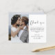 Casamento de Orçamento Obrigado Cartões que têm uma foto na frente e atrás. Os cartões de agradecimento contêm uma tipografia cursiva moderna, escrita com letra de mão, que é elegante, simples e moderna para usar após a celebração do dia do casamento.