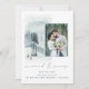 Foto De Casamento De Floresta De Neve Casada Com Feliz Natal. Celebre sua primeira temporada de festas como recém-casados com suas saudações festivas. Basta substituir a foto de exemplo por sua e personalizar com suas saudações e nomes embaixo. Casado & Feliz está em um estilo manuscrito moderno e uma cena de aquarela pastel festiva de neve no inverno é colocada atrás de sua foto.