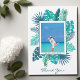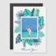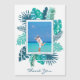Uma bela folhagem azul-esverdeada da praia botânica decora esta linda obrigado de destino que você tem de um cartão magnético. Crie seu próprio ímã especial de obrigados adicionando sua fotografia personalizada do seu casamento na ilha tropical. Um modelo sorridente feliz aguarda sua foto personalizada com as folhas de palma.