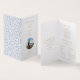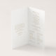 Chic e na moda. Elegante, mas simples. Este programa de cartas dobradas de casamento apresenta uma mensagem de boas-vindas e detalhes totalmente editáveis do programa com a sua foto de casal. O design é definido contra um fundo branco nítido, com um conjunto de fontes contemporâneas em uma fonte de ouro quente. Totalmente na moda e romântico com os seus sabores. Este design adiciona algo especial ao seu grande dia. Personalize esta design para torná-la sua. DICA: Zazzle transforma automaticamente sua foto no formato de círculo desejado.