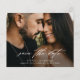 Uma simples e romântica foto de casamento horizontal salva a data com belas caligrafias de script na frente. As costas têm uma colagem de duas fotos com o site de casamento. Clique no botão editar para personalizar este design.