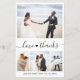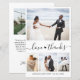 Orçamento "Obrigados e amor" Mão Lettrada Coração Escrita Elegante, Minimalista Cartões de agradecimentos de Colagem de Fotos Casada em branco preto. Simples modelo de cartão de casamento bonitinho com quatro (4) fotos na frente e uma foto no verso. Com o texto "Amor e obrigados" numa bonito letra escrita com letras maiúsculas e minúsculas na cauda do swash. Adicione o seu nome e obrigado à sua mensagem.