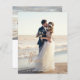Personalize facilmente esta elegante Foto de Casamento Obrigado Cartões com duas fotos de casamento em frente e atrás: uma foto vertical de cheio com uma camada de gradiente de mármore branco e "obrigado você" em uma folha metálica de ouro elegante e tipografia escrita à mão, e uma foto horizontal na parte de trás, com um obrigado personalizável que você escreve em letra moderna e simples sans serif. O orçamento Obrigado Cartões com fotos tem um fundo branco minimalista, mas você pode editá-lo em qualquer cor.