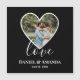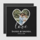 O design tem quadros de coração negro no centro e textos brancos modernos de caligrafia que podem ser personalizados de acordo com sua preferência. Substitua a foto no centro por sua própria foto de casamento. Vai fazer um adorável costume de presentes de casamento para seus hóspedes ou para seu próprio amor.