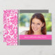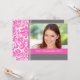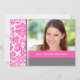 Modelo de foto personalizado 18º Convites de aniversário em elegante e bonito cor-de-rosa brilhante, cinzas escuras de carvão e cor damasco floral branca clássica e chic. Adicione seu nome, foto e detalhes da festa para um convite de aniversário exclusivo e na moda 18.