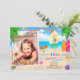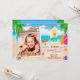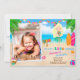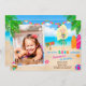 Foto: convite de aniversário de Luau convite havaiano para a garota. Bonito convite havaiano para o aniversário de uma menina loira, surfs, praia tropical e oceano azul, sigla de aloha e alguns equipamentos de festas tropicais. Basta editar este modelo fácil de usar no menu Personalização.