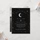 Uma lua celestial e um convite de casamento estrelado com um fundo negro e um texto branco com elementos. Você também pode adicionar sua própria foto no verso. Personalize a cor do padrão estelar, fundo, preenchimento de arco e elemento lua!