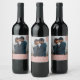 Simples tipografia tradicional, etiqueta fotográfica, casamento guarde as etiquetas de vinho. Design, foto horizontal do solteiro, tipografia branca e fundo cor-de-rosa-rosa empoeirado.