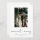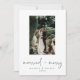 Um cartão com fotos moderno para enviar para sua primeira temporada de festas como um cartão de casal casado - também pode servir como anúncio de casamento. Este design apresenta o seu retrato favorito de casamento e "casado e feliz" em caracteres pretos do estilo manuscrito. Personalize ainda mais com seus nomes e data, e uma mensagem opcional no verso.