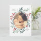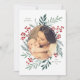 Este cartão com fotos de férias de 1 foto, completamente personalizável, apresenta uma elegante botânica para o inverno de aquarelas que elegantemente enquadra sua foto. Claro que vou fazer uma declaração impressionante e na moda neste feriado! Esta design faz parte de uma coleção. Arte original da designer Nicole Barreto.