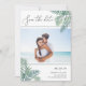 Anuncie seu casamento de verão, destino ou praia com essas cartões salve a data tropicais com sua foto horizontal ou paisagística favorita. Folhas tropicais de palma em cor verde-d'água aparecem nos cantos, com "salve a data" e seus detalhes de casamento em uma mistura elegante de roteiro e tipografia serif.