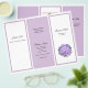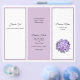 Modelo de brochura tripla na lavanda e branco com flores de hydrangea roxas. Dobre em terceiro e adicione uma foto de si mesmo à seção do dentro central. Alternar painéis brancos e lavandas em ambos os lados do papel do folheto do barato permite personalizar cada área com informações sobre sua empresa.