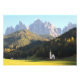 Foto impressão da igreja de San Giovanni em Ranui (Sankt Johann) em frente aos picos da montanha Geisler ou Odle dolomites em Papais noeis Maddalena (Sankt Magdalena) no Val di Funes, na Itália.