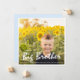 Que bom que esperamos o cartão de anúncio de gravidez fotográfica Big Brother com azul no verso.