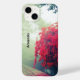 Uma capa de telefone com uma bela fotografia. Um dia nebuloso com trilhas de ferro enroladas e uma folhagem linda e uma linda árvore vermelha. Uma imagem muito cênica e modesta.