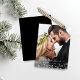 Black and White Winter Snowflakes Fala Natal Cartões de Natal com fotografia a apresentar a sua fotografia e um doce quadro de flocos de neve brancos e brancos. A parte de trás é um chic preto, mas pode ser mudado. Entre em contato conosco em cedarandstring@gmail.com se precisar de assistência com o design ou produtos correspondentes.