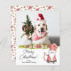Uma ilustração brilhante de Papais noeis na neve, desejando-lhe um Feliz Natal. Personalize a mensagem e uma foto na parte traseira do cartão.