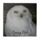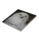Para fãs de coruja! Azulejo cerâmico com a foto de uma coruja de neve com olhos amarelos. Selecione o tamanho do seu azulejo. Faz uma trivet de cozinha excelente!