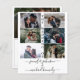Este design de convite para o casamento tem 6 colagens de fotos, o casamento do texto no meio, um texto de na moda de roteiro de caligrafia na frente e tem uma foto, data e local do casamento e outros detalhes no verso. Convites de casamento para colagem de fotos modernas.