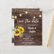 **ESTE É UM CONVITE EM PAPEL. ENVELOPES OPCIONAIS. PARA A VERSÃO ESPESSURA, CARTÃO, CARTÃO STOCK, VÁ AQUI: https://www.zazzle.com/z/acgpvnom?rf=238937196885903396 Economize dinheiro em convites formais com este convite menor que tem uma opção para envelopes. Prepare seus convidados para o maravilhoso casamento com seu Sunflower, Photo, Wood, & String Lights Salvem as Datas. Quer um cartão, uma versão maior? Veja a nossa coleção de casamento para ver as cartas. https://www.zazzle.com/collections/sunflower_wood_string_lights_invitations-119496189672050299?rf=238937196885903396