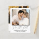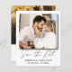 Elegante e chic guarde nosso anúncio de data. Este modelo apresenta espaço para 2 das suas fotos de casais favoritas, para frente e verso da carta, em branco com legal caligrafia escrita à mão em ouro. Fácil de editar com seus próprios detalhes exclusivos.