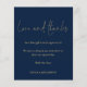 Um valor para o alternativo do ORÇAMENTO em tamanho menor de 4,5 x 5,6" de semirbrilho de 110 lbs, que é de espessura semelhante a um cartão postal (no entanto, não é adequado para uso como cartão postal). POR FAVOR, NOTE que existe UM por folha. Foto de Orçamento Amor de Casamento e Obrigados Roteiro Marinho e Dourado. Um design de tipografia minimalista com um roteiro de estilo de letra de na moda definido para Amor e Obrigados. No verso, substitua a imagem por sua favorita do dia como guardiã para seus convidados. Personalize facilmente o resto do texto com sua mensagem e nomes.