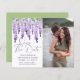 Foto de Orçamento Salvar a Data Watercolor Wisteria Casamento Salvar A Data Convites Contém flores elegantes de wisteria de aquarela em lilás macio, lavanda e roxo com verde em fundo branco com as informações Salvar a Data abaixo. Personalize editando o texto nas caixas de texto fornecidas e adicionando sua foto favorita. Projetado para você por ©Evco Studio www.zazzle.com/store/evcostudio