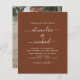 Foto de orçamento Terracotta Boho Brown Wedding Simple Primavera ou Summer Photo on Back Wedding Invtions - inclui uma bela e elegante tipografia de script com uma moderna cor simples e clássica para a celebração especial do dia do casamento.