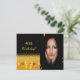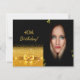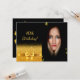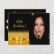 Convite de festas elegante, clássico, glamouroso e feminino. Uma fita e um arco dourados com brilho e brilho de ouro, um pouco de brilho e luxo para um aniversário. Fundo preto. Com o texto: aniversário de 40 anos! na frente. Modelo para sua foto. Adicione os detalhes do evento no verso.