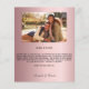 Um cartão de cardápio do estilo boêmico elegante. Rosas cor-de-rosa, de cor aquosa, como decoração. Modelos para seus nomes, data e menu de casamento. Uma falso estrutura dourada e uma cor metálica de fundo rosa poeirenta cúbica. Letras pretas coloridas. Volta: fundo rosa metálico falso empoeirado, sua foto e adicione sua história de amor. Dê às pessoas algo para falar enquanto espera que a comida seja servida!