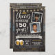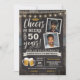 Surpreenda Cheers and Beers 50º Aniversário Foto Convite com conselho de giz e cartazes com idade e áreas fotográficas personalizáveis.
