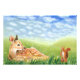 Um pequeno peão e um esquilo. Uma pequena camisa estava na grama alta e verde. Ele era um veado vermelho. Ele viu as nuvens flutuando suavemente através do vasto céu.. Livro ilustrativo Ilustração de um livro infantil "O cervo vermelho e as avelãs" - escrito e ilustrado por Julia Doria.