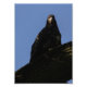 Uma águia careca, empobrecida à sombra, exceto pelo lado do seu rosto que é iluminado pela luz do sol.