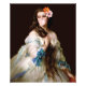 remix de pop art de uma pintura antiga de uma mulher com duas flores em seu cabelo soprando uma pastilha elástica rosa
