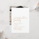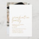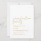 Deseje boa sorte ao seu formando com este convite de formatura simples e elegante. O convite apresenta um design elegante, com um fundo branco e suave. No centro, os detalhes do partido são lindamente letra escrita num texto dourado que expele um ar de sofisticação. O verso tem espaço para uma foto. Convide convidados para a sua festa de formatura com este simples design. A cor e o texto em segundo plano são editáveis.