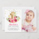 Adorável convite para o primeiro aniversario com um balão de folha número um adornado com flores cor-de-rosa bonito com um dorso de coordenação